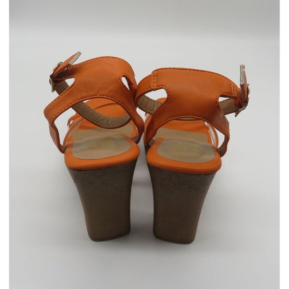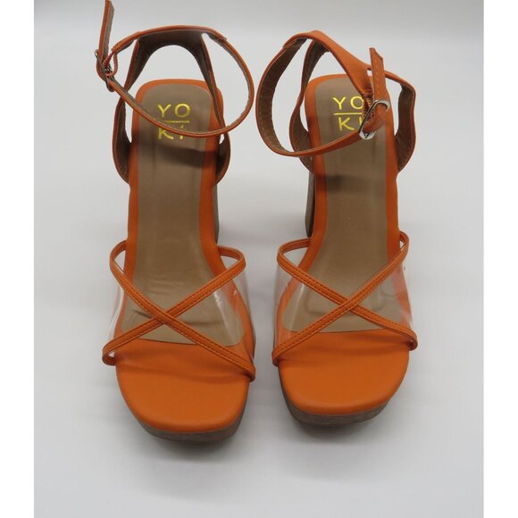 Yoki Orange High Heel Sandals Clear Straps Wooden Platform Sole 6.5 NEW
