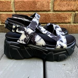 Yoki Platform Sandals Black White Tie Dye Size 39 US 8.5