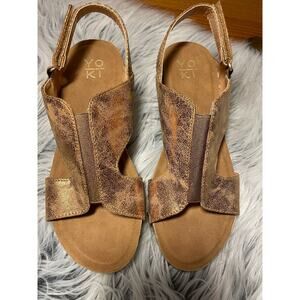 Yoki Wedge Sandal Women's Metallic Gold Platform Heels Size 8.5