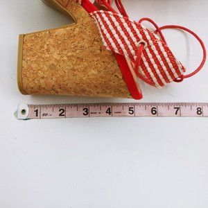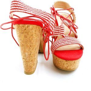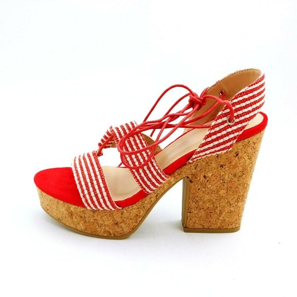 Yoki Womans Nolan 30 Fabric Lace Up High Heel Platform Sandals Red Sz 8 M NEW