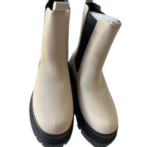 Yoki Women's Ankle Rain Boots Size 7 Cream with Black Accents Water-Resistant