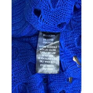 Yoki Women's Blue Crochet Open Knit Batwing Long Sleeve Cover Up Crop Top Size S