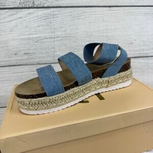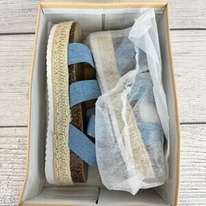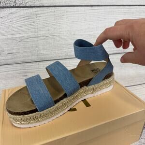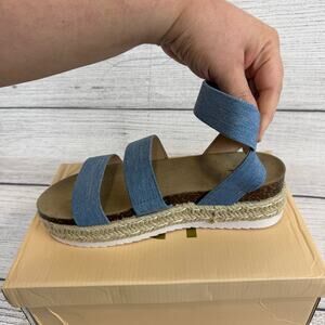 Yoki Women's Chiara Blue Chambray Jute Platform Ankle Strap Sandals Size 7.5