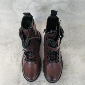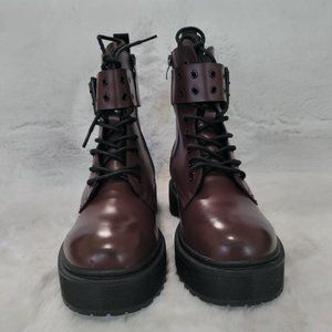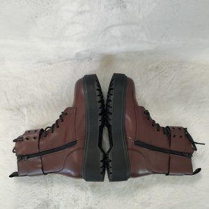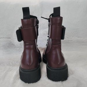 Yoki Women's Oxblood Chunky Vegan Leather Combat Boots Maroon Size 39 EU
