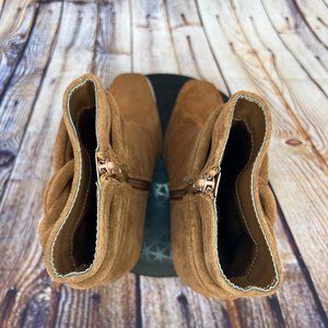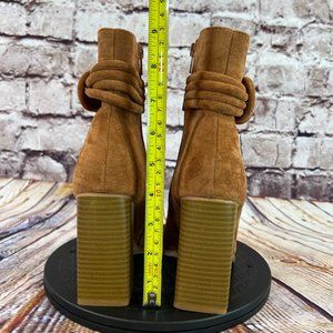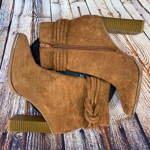 Yoki Women's Tan Knotted Harness Ankle Side Zip High Heeled Boots Size 7