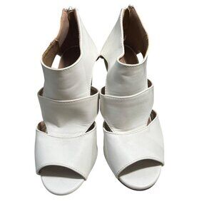 Yoki heels women's 6 white vegan leather chunky block heel strappy back zip