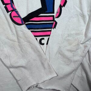 Yoko Racewear. Yoko America front graphic print in purple and pink. Long sleeve, 100% cotton, Made in USA.VTG 90s Distressed, worn, raw hems, staining and sharpie clover on back. Please see all photos for yellowing and stains. Great vintage motocross piece.