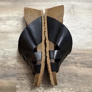 Yokono Black Leather Cross Strap Wedge Sandals Women’s Size 8 Spain