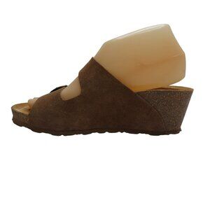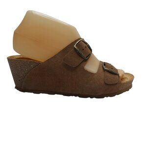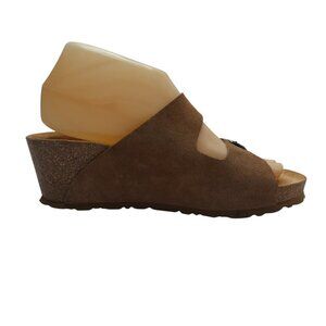 Yokono Brown Suede Open Toe Wedge Heel Slide Sandals Womens 7.5