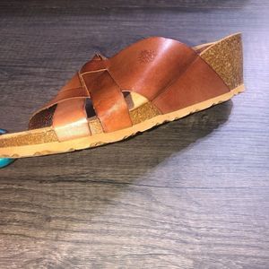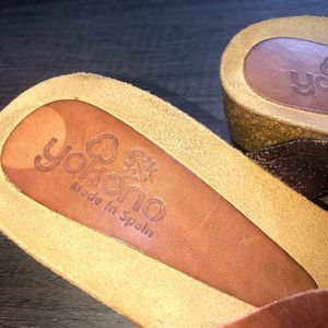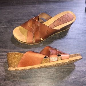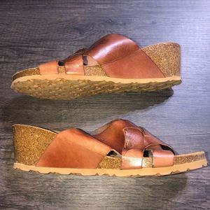 Yokono Cognac Cork Wedge Strappy Weave Sandal Size 9.5