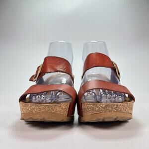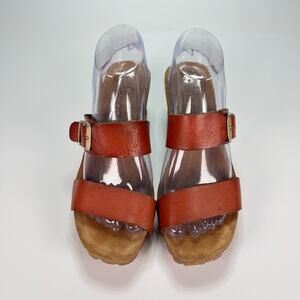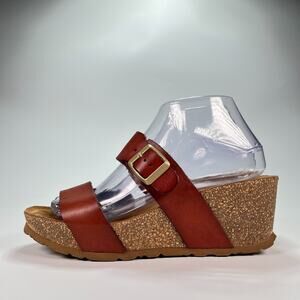 Yokono Octavia Wedge Sandals Brown Strappy Shoes Genuine Leather Womens Size 7.5