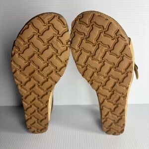 Yokono Sandals Womens 8 Leather Sandals Slip On Cork Wedge Buckle Vacation NEW