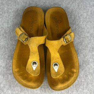 Yokono Suede Leather Thongs T-Strap Sandals Shoes 7.5 8 Yellow Cork Made Spain