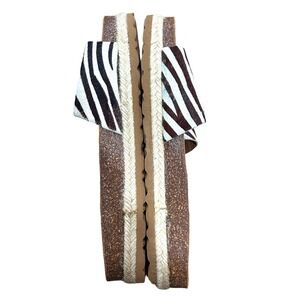 Yokono Womens Brown White Zebra Print Leather Calf Hair Slide Sandals Size 8