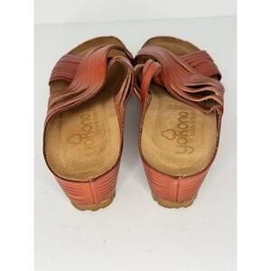 Yokono Women's Leather Slide Sandals Size 8 Brown Cross Strap Cork Wedge Comfort