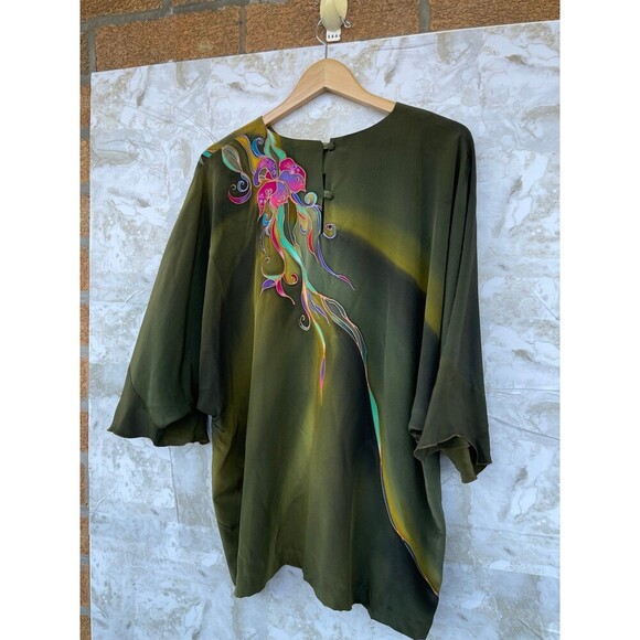 Yolanda Lorente Womens 100% Silk Painted size 1 X dolman blouse
