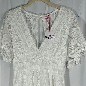 Yolly Italy White Lace Crochet Jumpsuit OS Wide Leg V-Neck