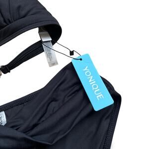 Yonique Black Bikini Swimsuit Set Halter Top & High-Waist Bottom Size S NWT
