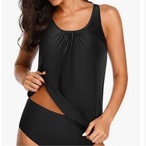 Yonique Black Swim Tankini Top with Adjustable Straps, Size L, NWT