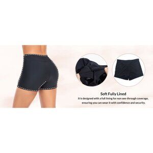 These Yonique swim shorts are the epitome of comfort and style, featuring a mid-waist design that offers exceptional tummy control. The fully lined, non-transparent fabric ensures confidence in and out of the water. Their elegant blue color pairs effortlessly with a variety of swim tops, making these shorts a versatile addition to your swimwear collection.
