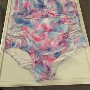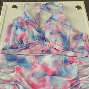 Yonique Pink Blue Tie Dye Bikini High Waisted Two Piece Swimsuits NWT Size 18W