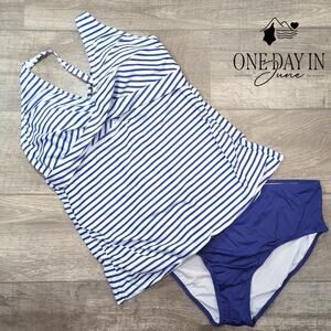 Yonique Plus Size Twist Front Tankini Swimsuit Size 18W