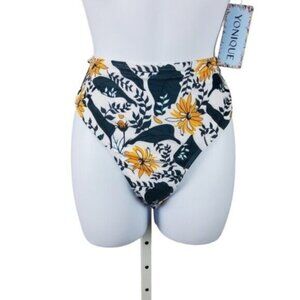 Yonique Ruched Halter Tankini Two Piece Swimsuit Yellow Floral Size Large
