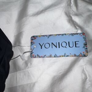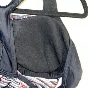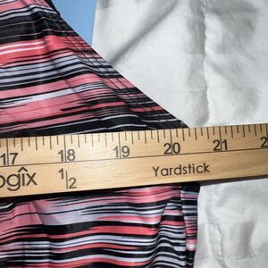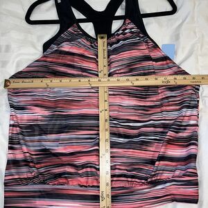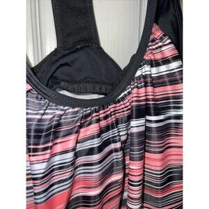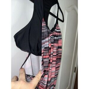 Yonique Women Swim Top Bathing Tankini Pink Black Stripes Racerback L Padded NWT