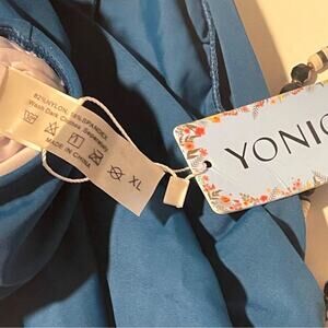 Yonique Women XL Blue Tankini Top Swimwear Loose Fit Full Coverage Adjustable