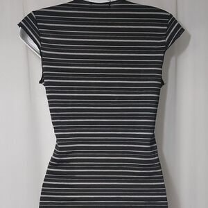 Yonique Black & White Stripped Just a Tiny on Shoulder Sleeve Polyester Care Tag Removed I hand washed Size M