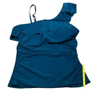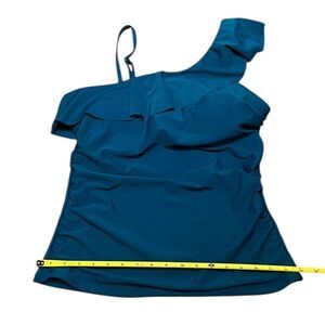 Yonique Women’s Teal One Shoulder Ruffle Swim Tankini, Size L, NWT