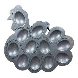 This vintage York Metal Crafters deviled egg tray is perfect for any collector or lover of unique kitchenware. The chicken hen shape adds a touch of whimsy to your dining table and the pewter material ensures durability. Made in 1976, this tray is a true vintage find. It can hold a dozen eggs and is perfect for serving deviled eggs or any other delicious appetizers. The country/region of manufacture is unknown, adding to the mystery and intrigue of this piece. It is not handmade and is categorized under collectibles, metalware, and pewter. Add this charming piece to your collection today!