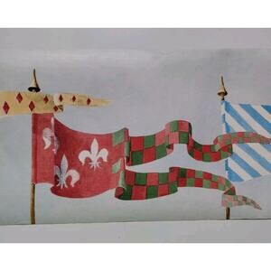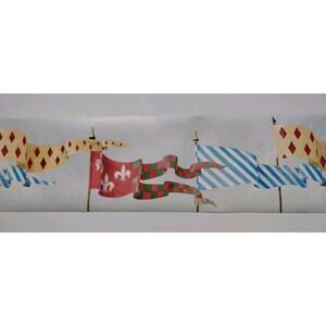 York Pre-pasted Decorative Border - 5yds - Light Blue Background - Medieval Flags