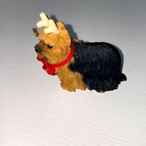 Yorkie Christmas Reindeer Ornament With Gold Tone Hanging String