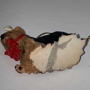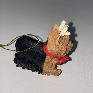 Yorkie Christmas Reindeer Ornament With Gold Tone Hanging String