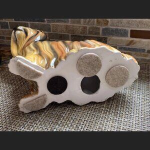Minor Flaws - Please see last two photos - I have circled the flaws in red. There is chipped paint at the tips of both ears. The ears are still there but the paint has chipped off. Someone used permanent marker to cover one of them up. There is one other minor chip in the paint behind its right ear. All of the chips can be touched up and it will look new!