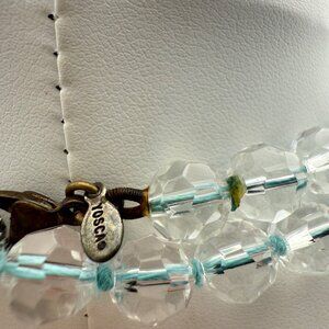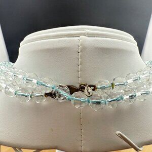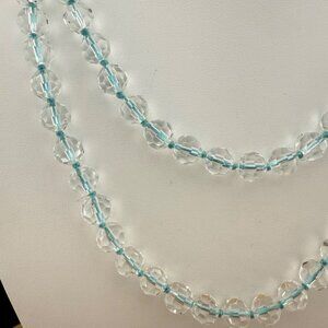Yosca Glass Bead Long Single Strand Necklace Clear & Light Blue Accents