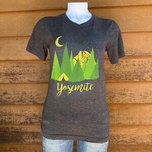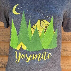 Yosemite Graphic Tee Shirt Soft Cotton Blend Heather Gray Camping Scene Women’s