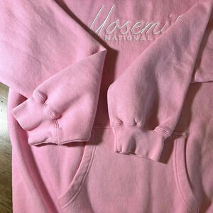 Yosemite National Park Prairie Mountain Brand Size Large Drawstring Hoodie Pink Sweatshirt Long Sleeve Kangaroo Pockets