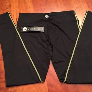Yoshion Yoga Pants Black/Lime Stiching - NWT