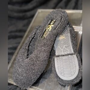 The iconic Jessy mule gets revamped in a cozy embrace of black faux shearling. Step into the cloud-like comfort of this slip on style that adds just the right mix of effortless and edgy to every step. For anytime, anywhere chic with a deep V-cutout vamp and low, stacked heel for the perfect mix of form and function.