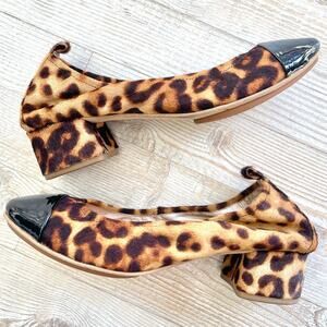 Yosi Samra Heidi Block Heel Cap Toe Calf Hair Pumps | Leopard/Black Siz…