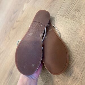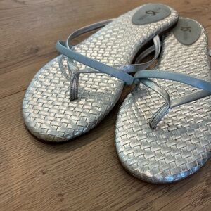 Yosi Samra Womens River Burnished Woven Flip Flop Sandals Silver/Blue Sz 9