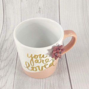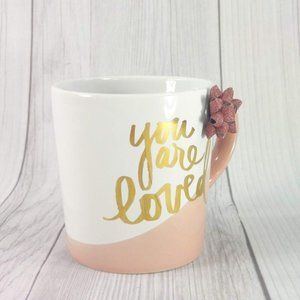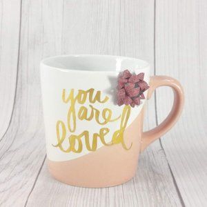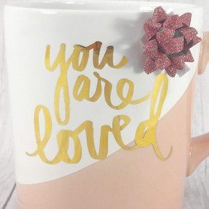 You Are Loved Mug Gift White Pink Love Lovers Coffee Tea Cup with Pink Ribbon