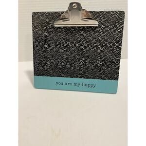 You Are My Happy Whimisical Photo Clip Board, Wooden, Blue & Black w White Spots