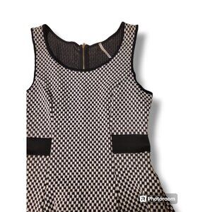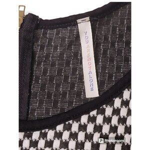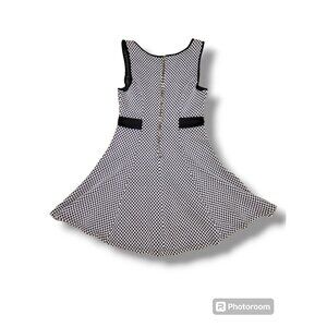 You Are Not Alone Black White Checkered Sleeveless A Line Skater Dress - L