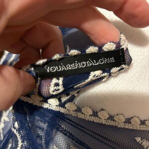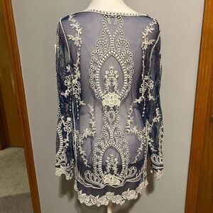 You Are Not Alone lace sheer mesh embroidered boho long sleeved blue top size L