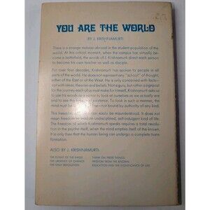 You Are the World J. Krishnamurti 1972 Vintage Paperback Harper & Row