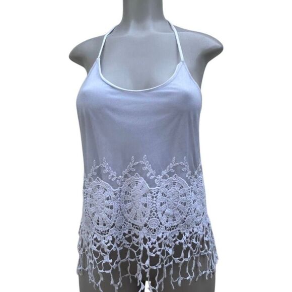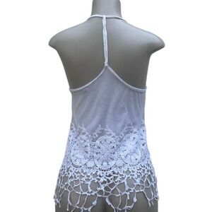 You Are Not Alone Cami Tank Top Women's Medium White Halter Embroidered Crochet