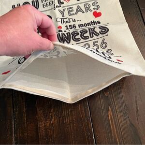 This item is a new Decorative pillowcase. On it is the breakdown of being in love for 13 years. The pillowcase would be a great anniversary gift. It is 17” x 17”. The pillowcase is new and comes in it’s original plastic wrap. (I did take it out for the photos.)